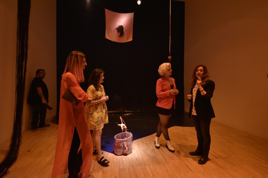 The Witch and The bitch es una muestra multicapas, multidisciplinar y multimateria. Es una gran instalación compuesta por obras y piezas de las dos artistas que se fusionan y que cuenta con intervenciones de Raisa Maudit, en las que se ejerce un ejercicio narrativo y escenográfico desde el diseño comisarial muy intenso y visible. Esta es la primera vez que Mariokissme y Mariana Echeverri trabajan juntas y también, la primera vez que Raisa Maudit trabaja con ellas como comisaria.