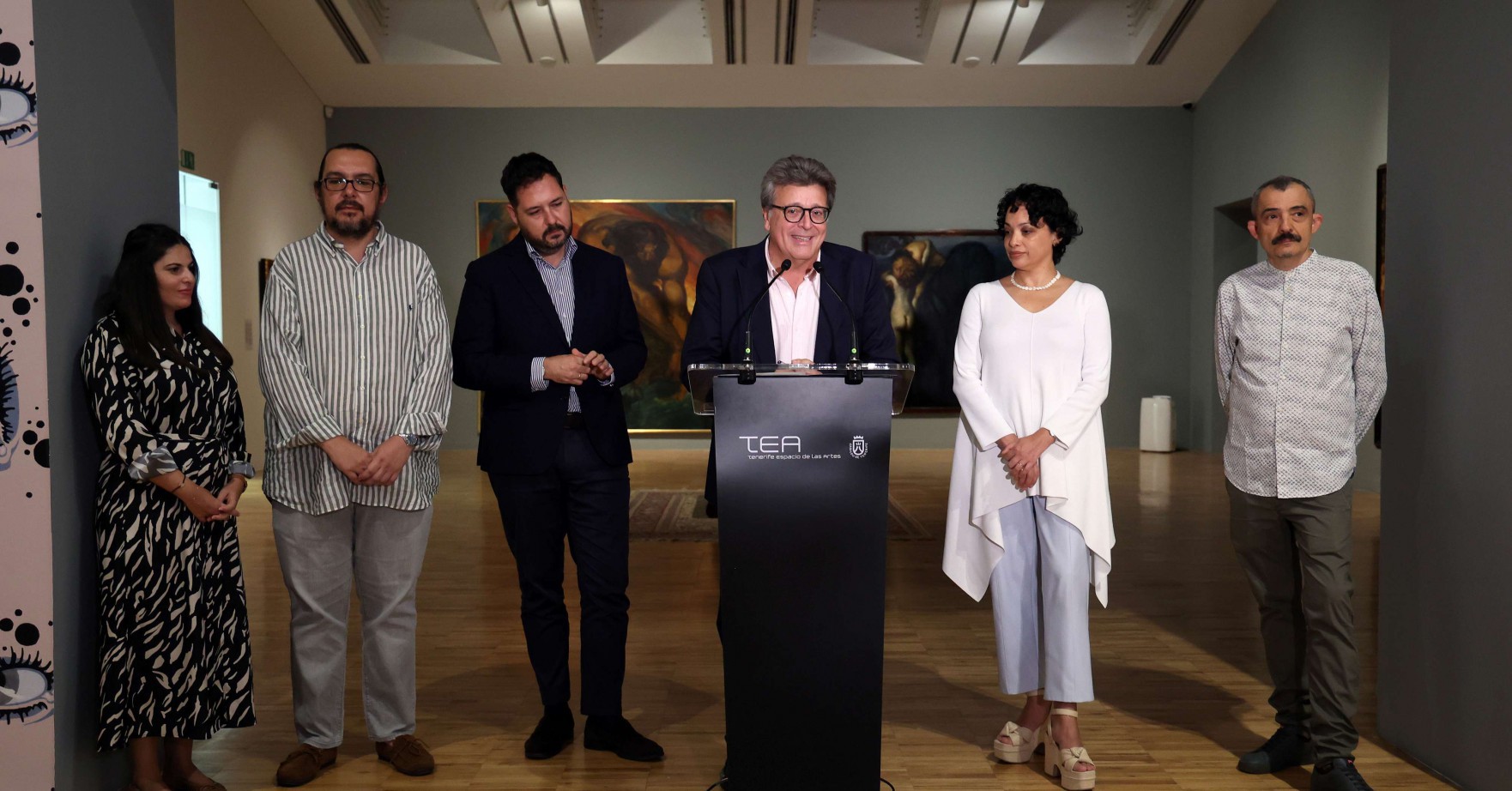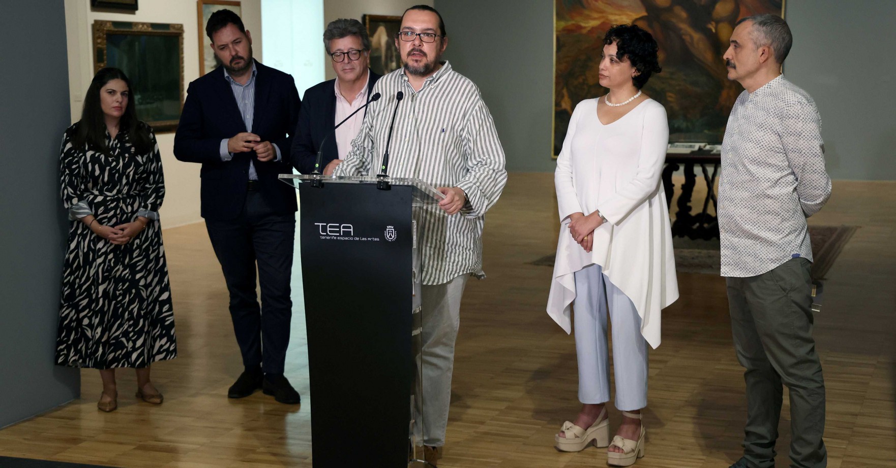 El consejero de Cultura y Museos de Tenerife, José Carlos Acha; el concejal de Cultura del Ayuntamiento de Las Palmas de Gran Canaria, Josué Íñiguez; la subdirectora artística del Museo Reina Sofía, Amanda de la Garza; el director artístico de TEA, Sergio Rubira; y el comisario Juan Vicente Aliaga; fueron los encargados de dar a conocer los detalles de esta muestra organizada por el museo TEA en colaboración con el Museo Nacional Centro de Arte Reina Sofía y el Museo Néstor de Las Palmas de Gran Canaria que cuenta con un catálogo que amplía los contenidos de la muestra e incluye textos del comisario y de diversos especialistas, que revisan la figura y la obra de Néstor desde una perspectiva contemporánea, subrayando su condición de artista cosmopolita y, al mismo tiempo, profundamente vinculado a la identidad cultural del Archipiélago.